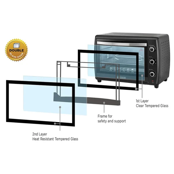 - Heat resistant double layer glass door design for added safety